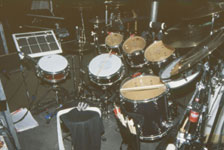 BJ: Nein, die Percussion-Tracks sind fast alle programmiert, und auch das mußte ich im Lauf der Zeit erst alles rausfinden. Ich bin ja de facto in eine laufende Show eingestiegen, wo nur begrenzt Zeit war, mich vorab mit bestimmten Dingen auseinandersetzen zu können. Wo auch nur begrenzt Zeit war, bestimmte Dinge rauszufinden oder bestimmte Fragen zu stellen. Obwohl ich die Show ja inzwischen seit viereinhalb Monaten spiele, entdecke ich selbst heute noch mitunter neue Dinge, die ich bislang nich bemerkt habe, daß da ein Shaker im Hintergrund mitläuft, den ich bislang wegen eines anderen Monitor-Mix nie gehört habe oder sowas. Dann denke ich, oha, da läuft ja schon ein Shaker im Background, dann brauche ich mich ja garnicht so auf meine HiHat zu konzentrieren, dann kann ich mich ja in diesem Moment ein wenig zurücknehmen und mich mehr auf die visuelle Seite der Show konzentrieren. Ich bin ja sowieso kein Viel-Spieler, sondern eher ein Fan von reduziertem Drumming, stehe auf Leute wie Jeff Porcaro, bei denen weniger auch oft mehr war.